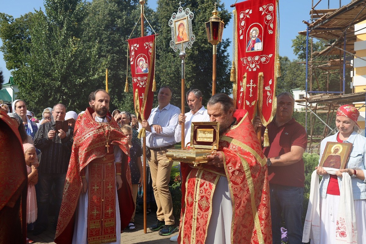 По окончании Литургии был совершен крестный ход вокруг обители с преднесением иконы и мощей святых покровителей монастыря.