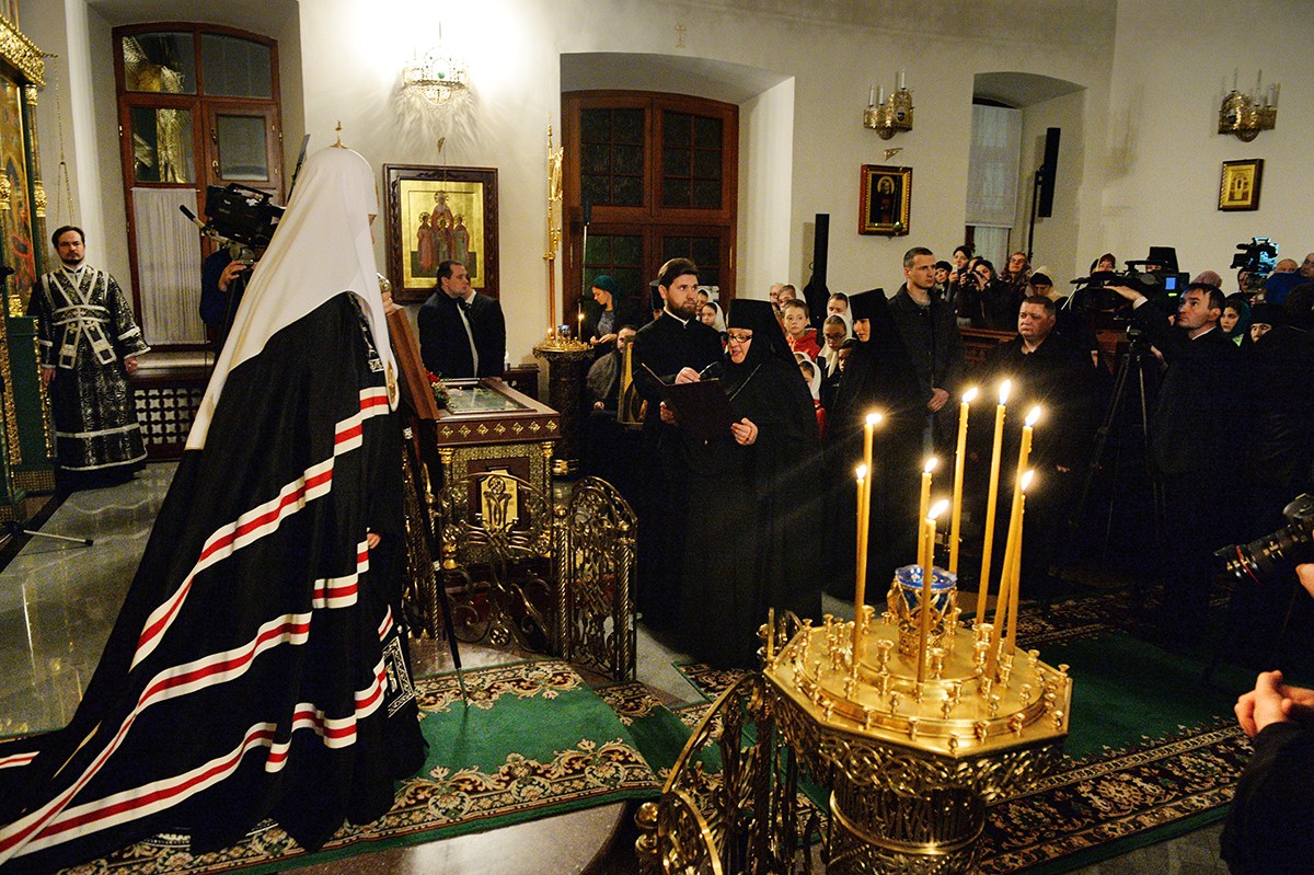 Вечером 17 марта 2016 года, в четверг первой седмицы Великого поста, Святейший Патриарх Московский и всея Руси Кирилл совершил Великое повечерие с чтением Великого покаянного канона прп. Андрея Критского в Троицком храме Стефано-Махрищского ставропигиального женского монастыря.