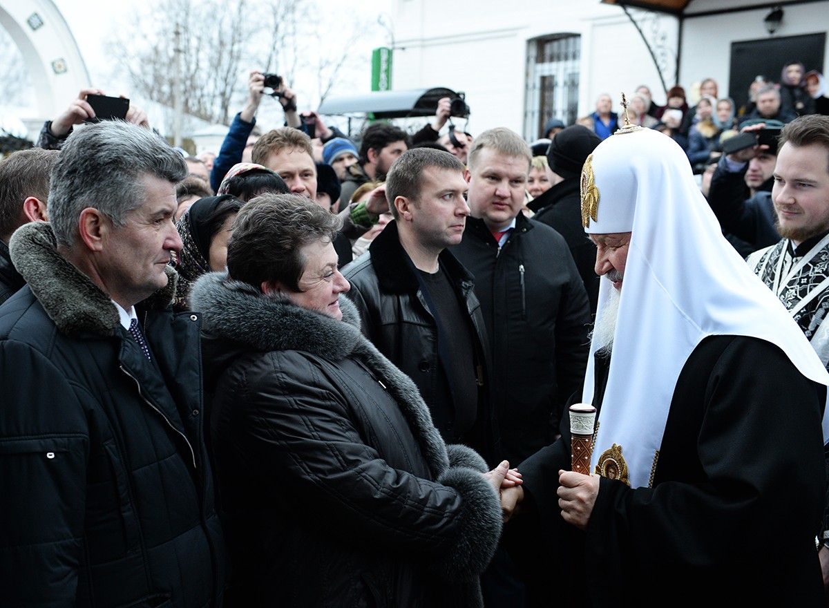 Затем в храме преподобного Стефана Махрищского Святейший Патриарх Кирилл поклонился мощам святого Стефана.