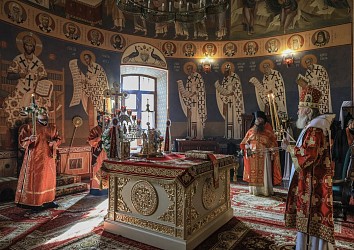 9 мая 2024 года, в четверг Светлой седмицы, в 79-ю годовщину Победы в Великой Отечественной войне, председатель Синодального отдела по монастырям и монашеству, наместник Донского ставропигиального мужского монастыря митрополит Каширский Феогност совершил Божественную литургию в Троицком храме Свято-Троицкого Стефано-Махрищского ставропигиального женского монастыря.