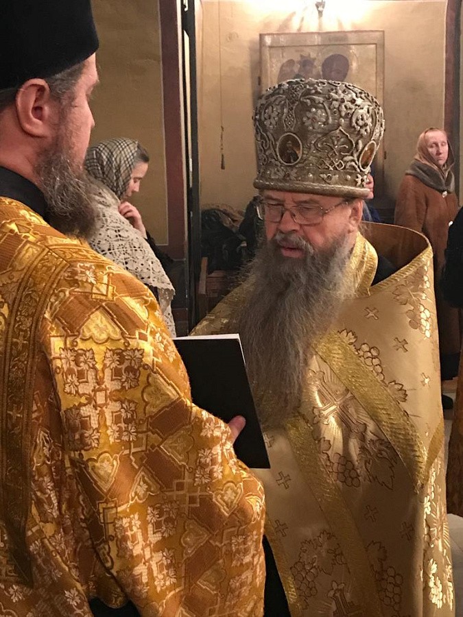 В монастырском храме святых отцов семи Вселенских Соборов архимандриту Алексию сослужили архимандрит Даниил (Воронин) с братией монастыря в священном сане.