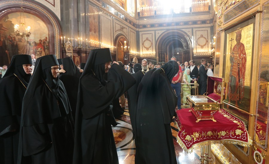В этот день Святейший Патриарх Московский и всея Руси Кирилл совершил Божественную литургию в кафедральном соборном Храме Христа Спасителя г. Москвы, где были установлены икона и ковчег с частицей мощей святого равноапостольного великого князя Владимира.