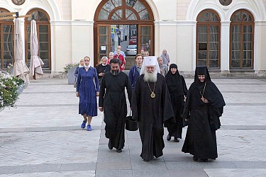 По окончании богослужения митрополит Феогност зачитал Патриаршее поздравление по случаю 25-летия возобновления иноческой жизни в Иоанно-Предтеченском ставропигиальном монастыре.