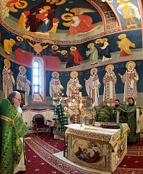 29 июня 2024 года, в день отдания праздника Пятидесятницы, председатель Синодального отдела по монастырям и монашеству, наместник Донского ставропигиального мужского монастыря митрополит Каширский Феогност совершил Божественную литургию в Никольском соборе Николо-Угрешского ставропигиального мужского монастыря.
