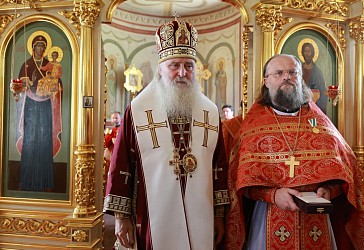За Божественной литургией Его Высокопреосвященству сослужили клирики обители и приглашенное духовенство.