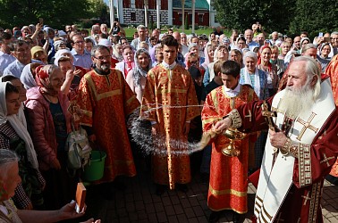 По заамвонной молитве владыка обратился к собравшимся с назидательным словом, призвав подобно святым князьям-страстотерпцам жизнью свидетельствовать истинность Веры Христовой.