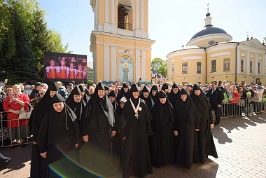 Среди молившихся в храме были игумения Феофания (Мискина), насельницы Покровской обители и воспитанницы монастырского приюта для девочек.
