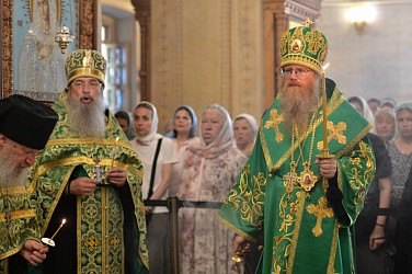Затем митрополит Климент обратился со словами приветствия к наместнику монастыря епископу Иосифу, братии и многочисленным паломникам.
