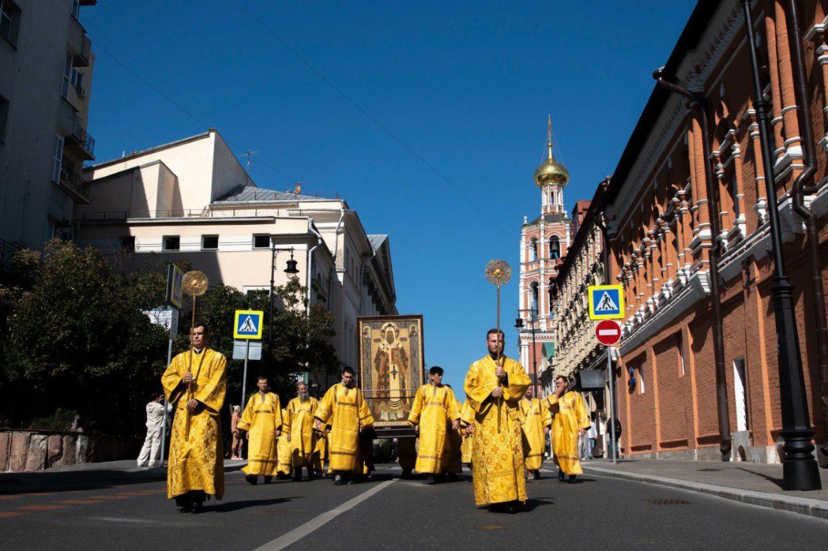 Икону святителя Петра несли члены братства «Сыны Афона». Эта традиция, по благословению Святейшего Патриарха Кирилла, установилась в 2015 году, когда отмечалось 700-летие основания Высоко-Петровского монастыря. Тогда сам Святейший Патриарх Кирилл из Успенского собора шел крестным ходом.