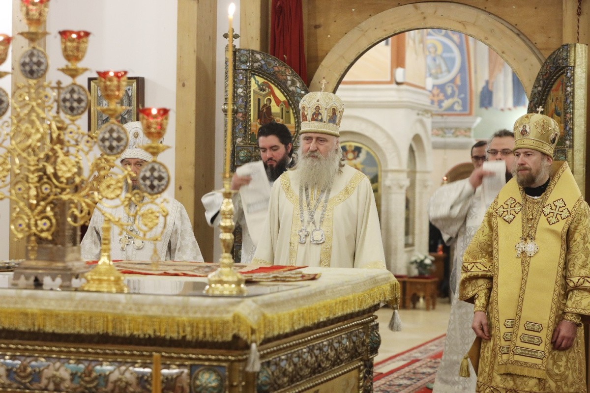 Его Высокопреосвященству сослужили митрополит Саранский и Мордовский Зиновий, епископ Сызранский и Шигонский Леонтий, участники монашеского направления Рождественских чтений в священном сане, клирики Зачатьевской обители. В алтаре молился епископ Солнечногорский Алексий, наместник Данилова ставропигиального мужского монастыря.