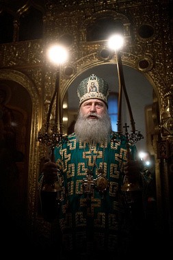 Накануне дня памяти преподобного Никона в Трапезном храме всенощное бдение совершил председатель Синодального отдела по монастырям и монашеству митрополит Каширский Феогност.