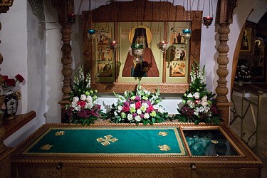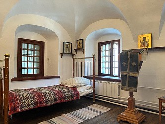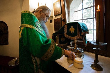 Утром в Покровском храме Даниловской обители наместник монастыря епископ Солнечногорский Алексий отслужил Божественную литургию и совершил славление у раки преподобного Георгия. На богослужении пел хор монастыря. Затем владыка Алексий посетил недавно открытую мемориальную келью преподобного.