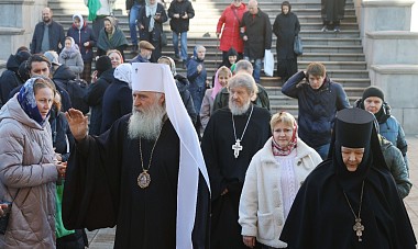 По окончании Святого Причащения митрополит Феогност поздравил всех с праздником и обратился к собравшимся с архипастырским словом о значении традиции в воспитании поколений.