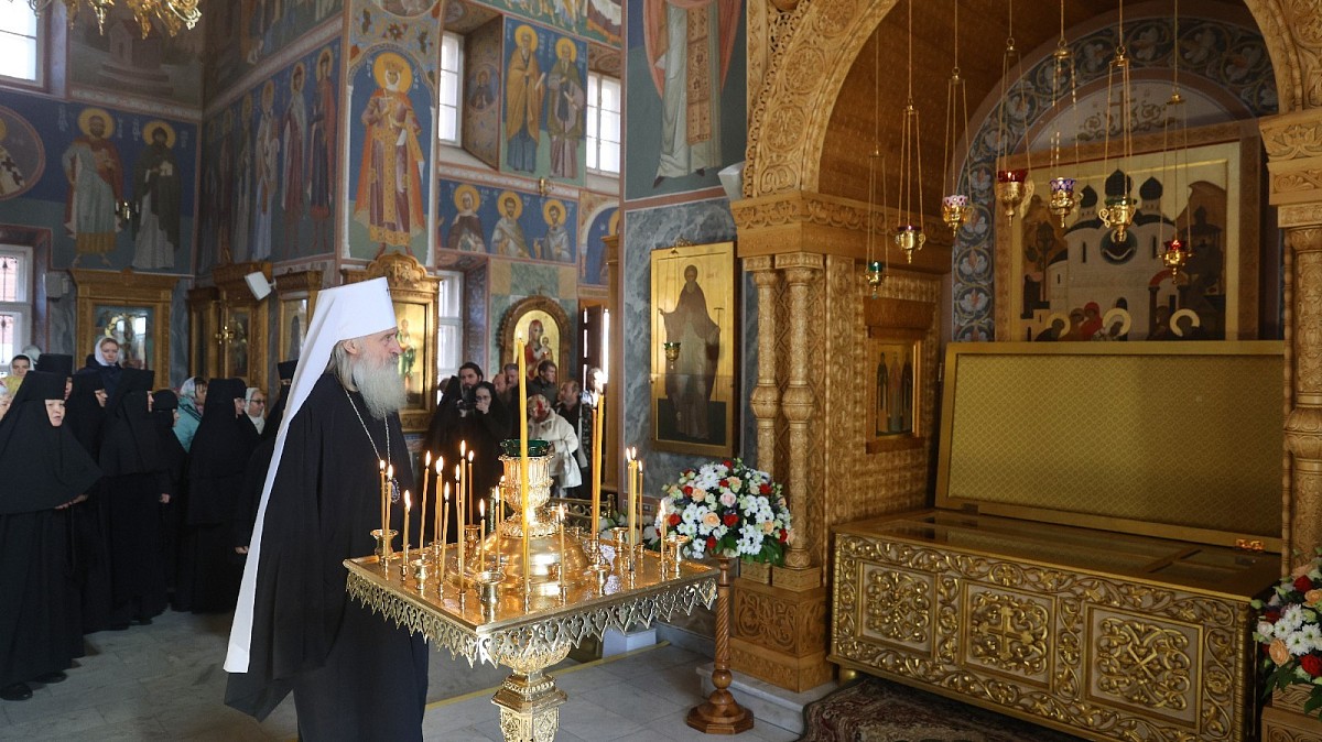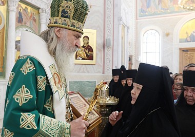 Затем перед мощами преподобных Кирилла и Марии было пропето величание и прочитана молитва святым покровителям обители.