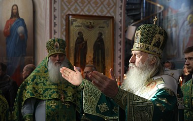 Его Высокопреосвященству сослужили братия Свято-Троицкой Сергиевой лавры в священном сане, гости из числа духовенства Луганской епархии и клирики Хотькова монастыря.