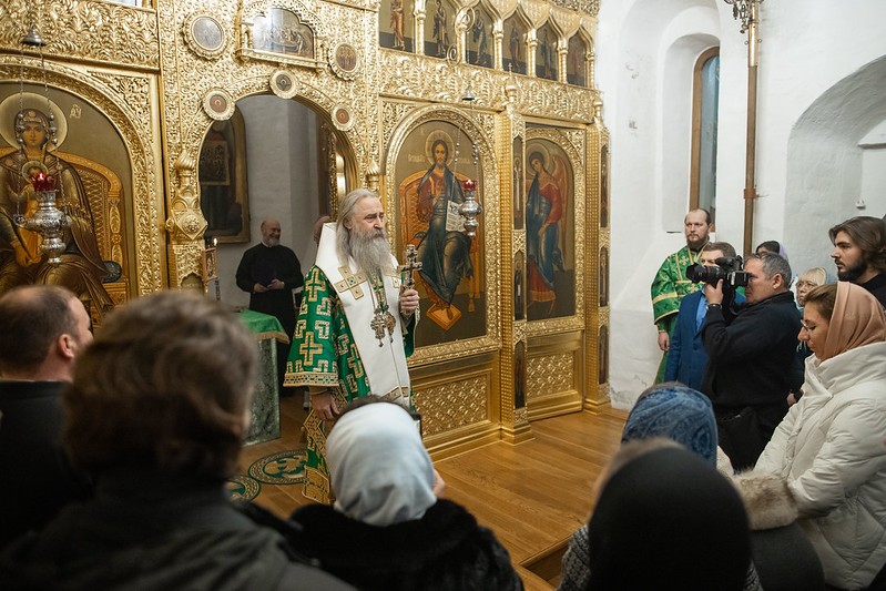 Церковные песнопения исполнил знаменный хор Лавры под управлением иеромонаха Зиновия (Бубякина).