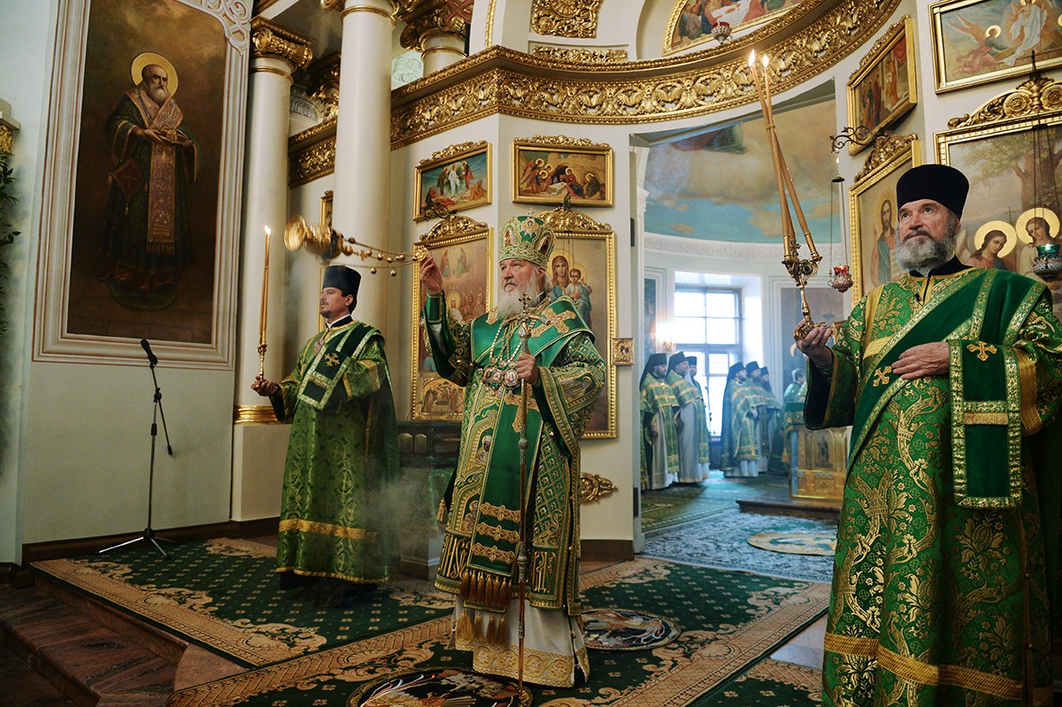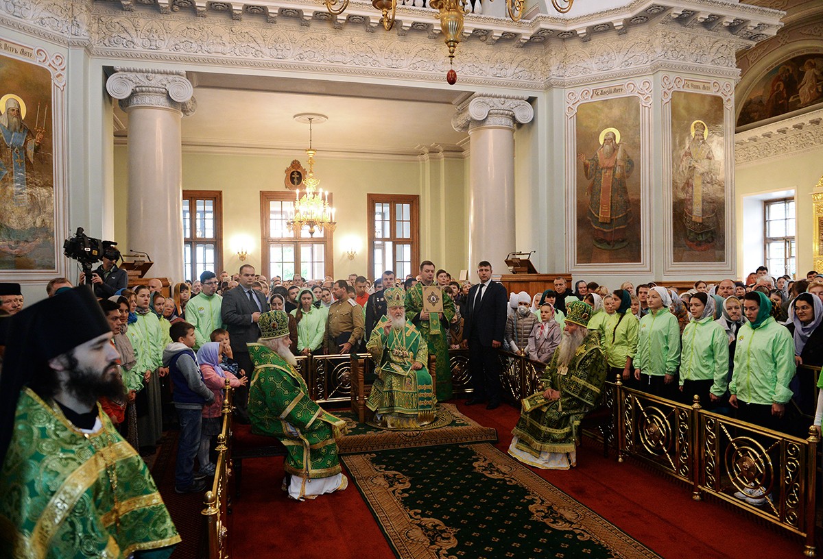 Затем Святейший Владыка огласил указ, согласно которому в главном храме Данилова ставропигиального мужского монастыря – соборе Живоначальной Троицы – благословляется совершение Божественной литургии с отверстыми Царскими вратами по «Отче наш...».