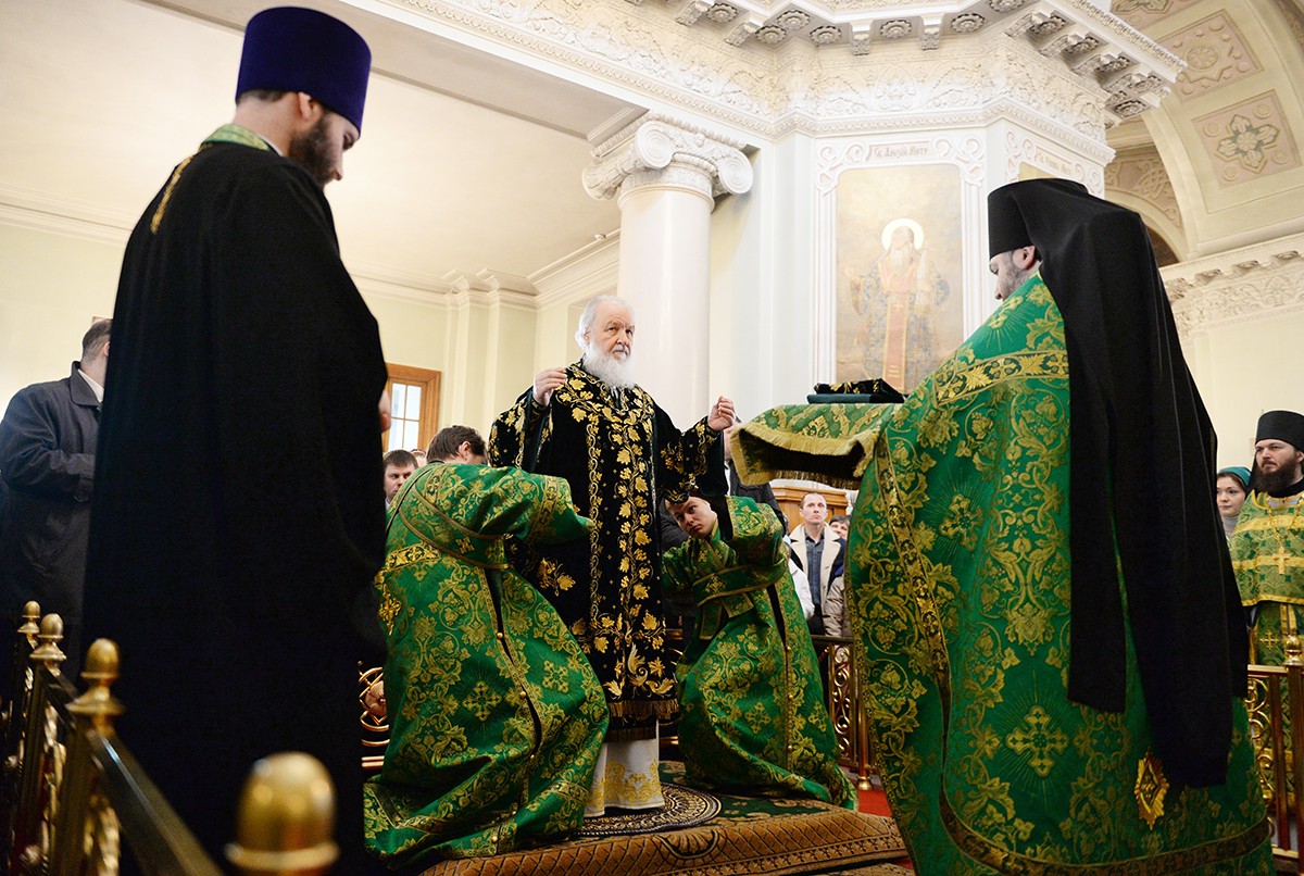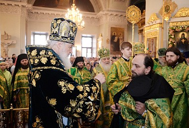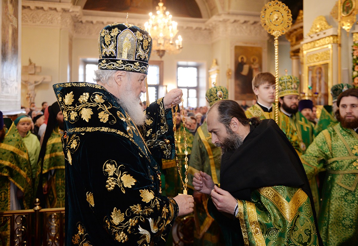 За Литургией Святейший Патриарх Кирилл рукоположил монаха Илариона (Карандеева), насельника Сретенского ставропигиального мужского монастыря Москвы, в сан иеродиакона.
