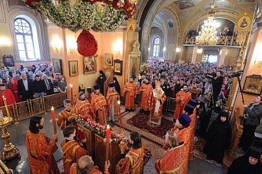 Его Высокопреосвященству сослужили заместитель Председателя Синодального отдела по монастырям и монашеству архимандрит Стефан (Тараканов) и клирики обители.