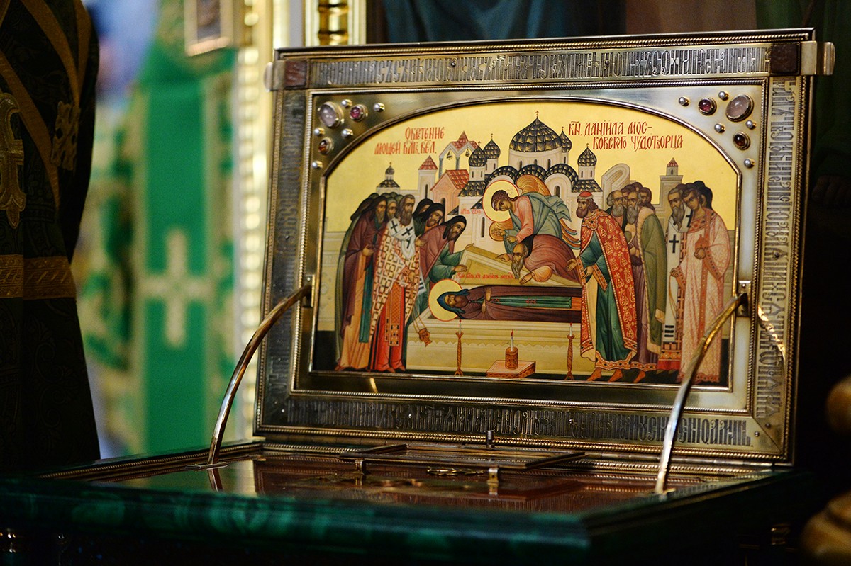 12 сентября 2016 года, в праздник обретения мощей святого благоверного князя Даниила Московского (1652) и перенесения мощей святого благоверного великого князя Александра Невского (1724), Святейший Патриарх Московский и всея Руси Кирилл совершил Божественную литургию в Троицком соборе Данилова ставропигиального мужского монастыря Москвы.