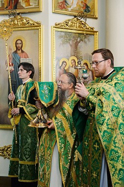 Его Святейшеству сослужили: митрополит Истринский Арсений, первый викарий Патриарха Московского и всея Руси по г. Москве; епископ Воскресенский Савва, наместник Новоспасского ставропигиального мужского монастыря Москвы; епископ Бронницкий Парамон, наместник Донского ставропигиального мужского монастыря Москвы; протоиерей Владимир Диваков, секретарь Патриарха Московского и всея Руси по г. Москве; архимандрит Алексий (Поликарпов), наместник Данилова монастыря; архимандрит Филарет (Булеков), заместитель председателя Отдела внешних церковных связей Московского Патриархата; протоиерей Олег Воробьев, благочинный Даниловского округа, настоятель храма Живоначальной Троицы на Борисовских прудах; насельники монастыря в священном сане.