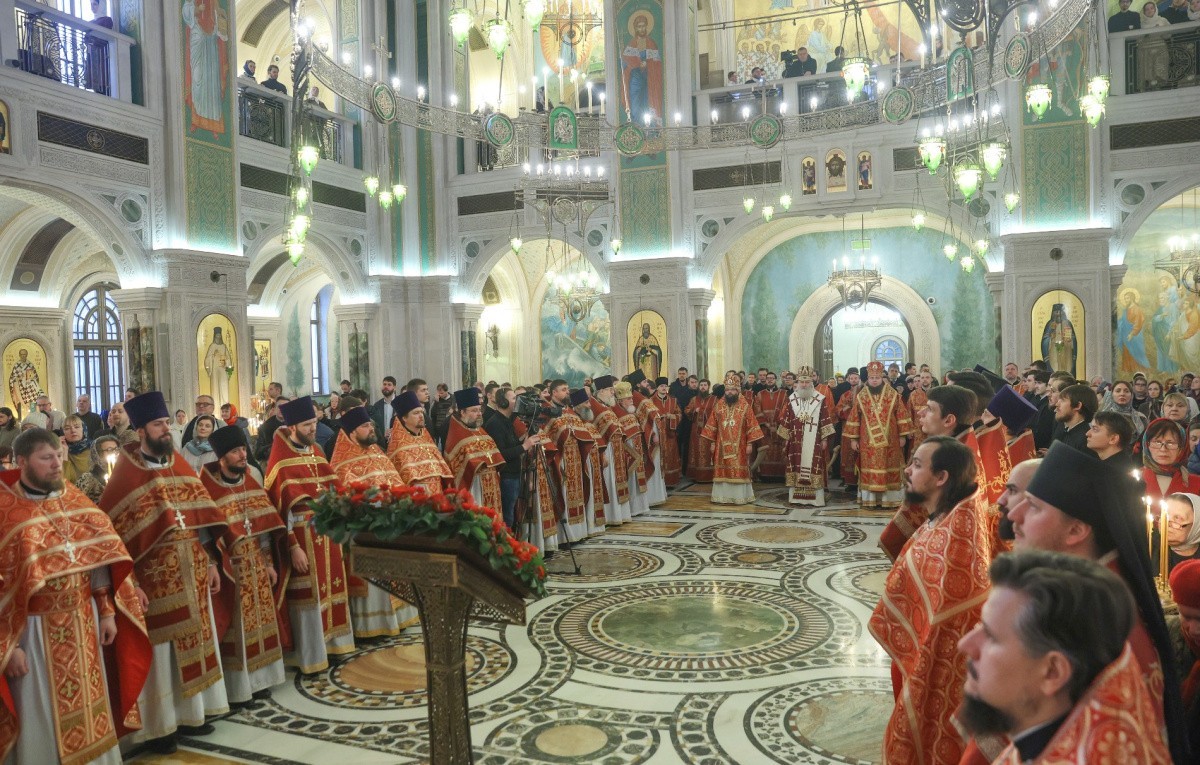 За Божественной литургией Его Высокопреосвященству сослужили: архиепископ Егорьевский Матфей (Копылов), епископ Петергофский Силуан (Никитин), наместник Сретенского монастыря игумен Иоанн (Лудищев), братия и гости обители в священном сане.