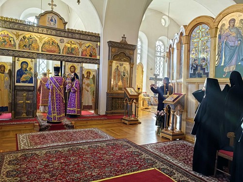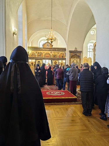 По окончании Литургии епископ Иосиф поздравил всех с престольным праздником и напомнил, что в этот день мы молимся об упокоении духовника шамординских сестер архимандрита Поликарпа (Ничипорука) почившего в 2024 году.