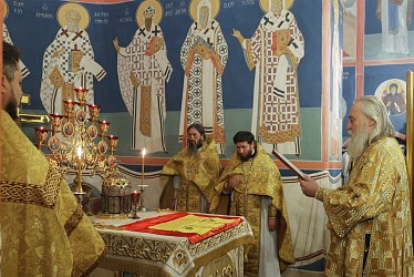 Его Высокопреосвященству сослужило духовенство Угрешской обители в священном сане.