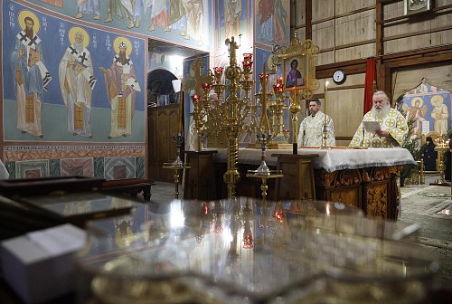 Его Высокопреосвященству сослужило монастырское духовенство.