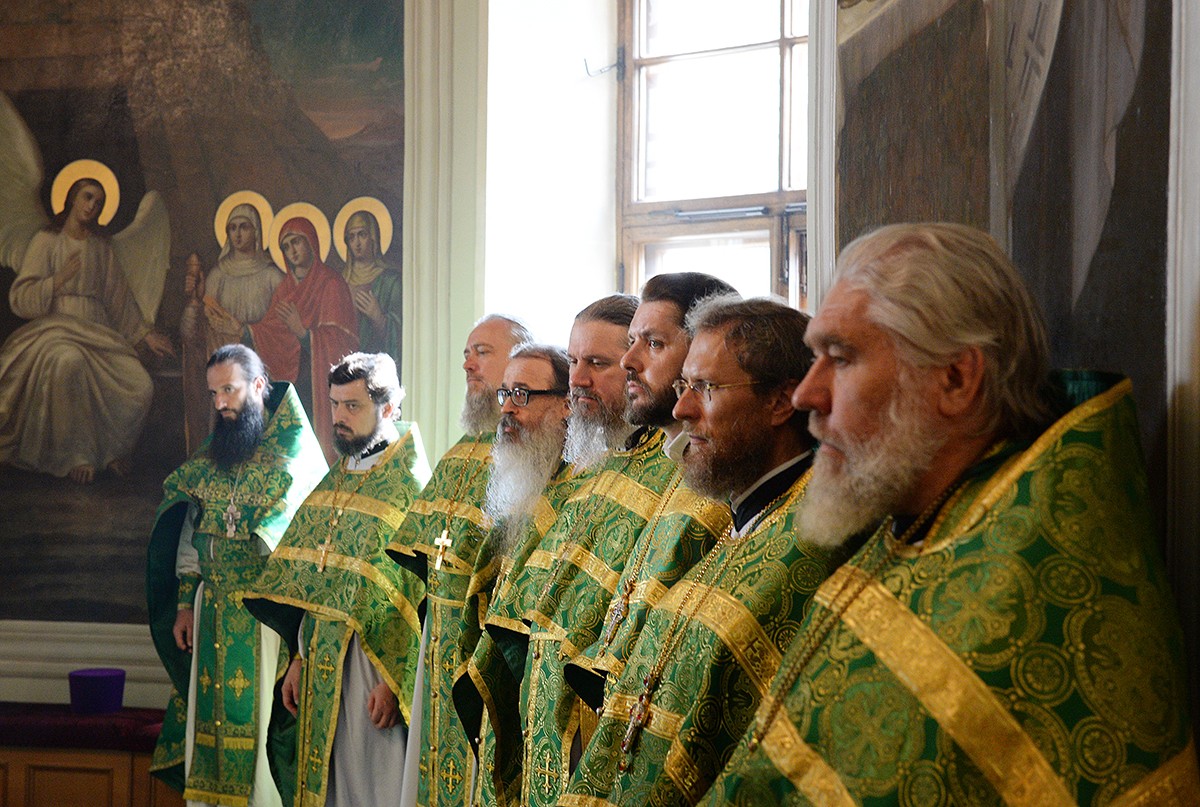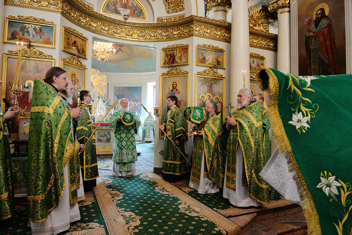 Его Святейшеству сослужили: митрополит Волоколамский Иларион, председатель Отдела внешних церковных связей Московского Патриархата; митрополит Истринский Арсений, первый викарий Патриарха Московского и всея Руси по г. Москве; епископ Бронницкий Парамон, наместник Донского ставропигиального мужского монастыря г. Москвы; протопресвитер Владимир Диваков, секретарь Патриарха Московского и всея Руси по г. Москве; архимандрит Алексий (Поликарпов), наместник Данилова монастыря; архимандрит Лука (Пинаев), благочинный Данилова монастыря; протоиерей Олег Воробьев, благочинный Даниловского округа, настоятель храма Живоначальной Троицы на Борисовских прудах г. Москвы; протоиерей Андрей Марущак, клирик Храма Христа Спасителя г. Москвы; протоиерей Игорь Якимчук, секретарь ОВЦС по межправославным отношениям; насельники Данилова монастыря в священном сане и московское духовенство.
