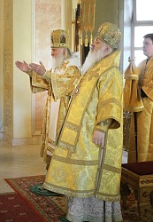 Его Высокопреосвященству сослужили наместник Екатерининского монастыря епископ Видновский Тихон, братия обители в священном сане.