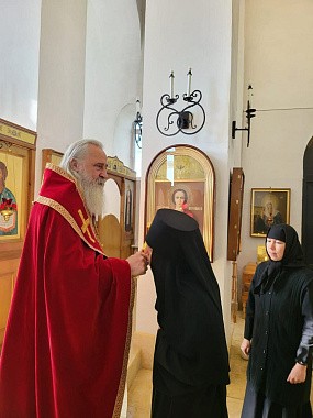 Богослужение прошло в Покровском храме скита.