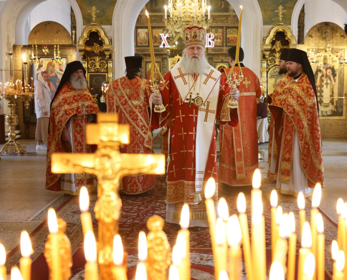 Его Высокопреосвященству сослужили временно исполняющий обязанности наместника священноинок Парфений (Леонов), братия обители в священном сане.