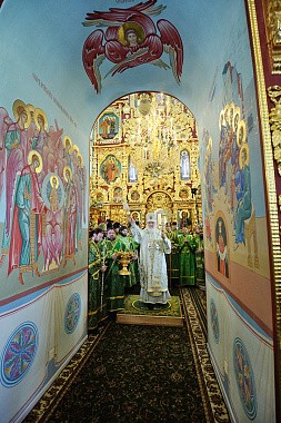 После сугубой ектении Предстоятель Русской Церкви совершил молитву о мире на Украине.