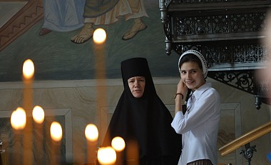 За богослужением молились настоятельница Хотькова монастыря игумения Олимпиада (Баранова) с сестрами и воспитанницами, настоятельница Борисоглебского Аносина ставропигиального женского монастыря игумения Мария (Солодовникова) с сестрами, прихожане и гости обители.