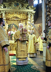 Богослужебные песнопения исполнил хор Донского монастыря.