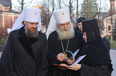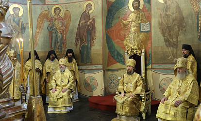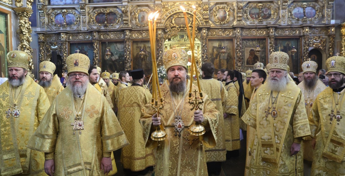 Его Высокопреосвященству сослужили: председатель Синодального отдела по монастырям и монашеству, наместник Донского ставропигиального мужского монастыря митрополит Каширский Феогност; архиепископ Владикавказский и Аланский Герасим; наместник Введенского ставропигиального мужского монастыря Оптина пустынь епископ Можайский Иосиф; епископ Таганрогский Артемий, викарий Ростовской епархии; епископ Джакартский Питирим, викарий Сингапурской епархии; наместник Высоко-Петровского ставропигиального мужского монастыря г. Москвы епископ Луховицкий Евфимий; епископ Николаевский и Богородский Иннокентий; епископ Балаковский и Николаевский Варфоломей; епископ Актюбинский и Кызылординский Игнатий; епископ Талдыкорганский Клавдиан, викарий Астанайской епархии; епископ Пинский и Лунинецкий Георгий; епископ Друцкий Евсевий, викарий Витебской епархии; наместник Свято-Троицкой Сергиевой лавры епископ Сергиево-Посадский и Дмитровский Кирилл; епископ Сарапульский и Можгинский Павел; епископ Братский и Усть-Илимский Константин; епископ Россошанский и Острогожский Дионисий; епископ Талгарский Вениамин; епископ Ноябрьский Феодосий, викарий Салехардской епархии; епископ Бикинский Пантелеимон, викарий Хабаровской епархии.