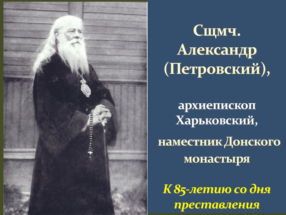 24 мая 2025 года, в день памяти сщмч. Александра (Петровского), архиепископа Харьковского, наместника Донской обители в Донском ставропигиальном мужском монастыре состоялась лекция, посвященная святому. Лекцию прочла М. В. Артюшенко, историк, краевед, автор ряда книг и статей по истории Донского монастыря.