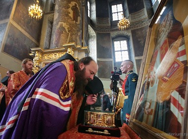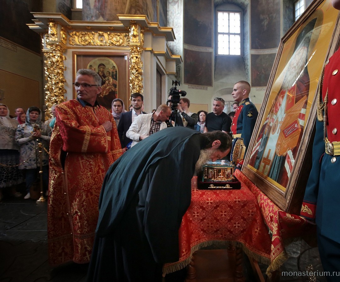 Святые мощи были перенесены в Большой собор Донского монастыря, где перед ними был отслужен молебен с чтением Евангелия.