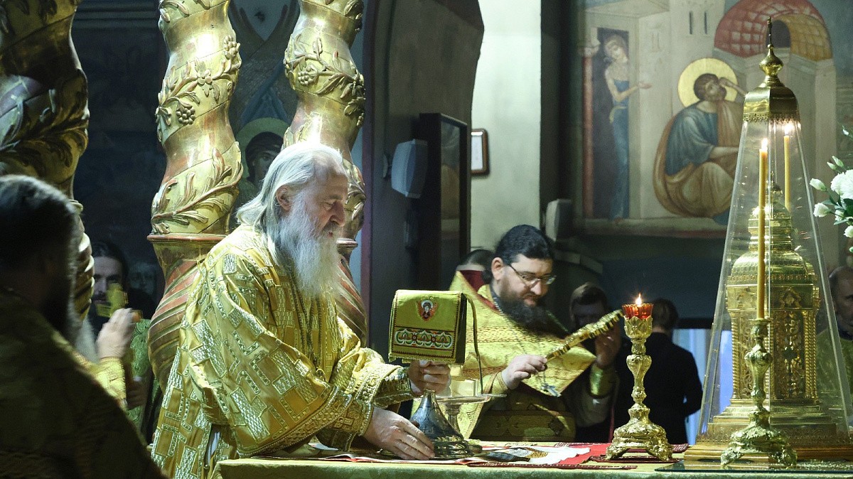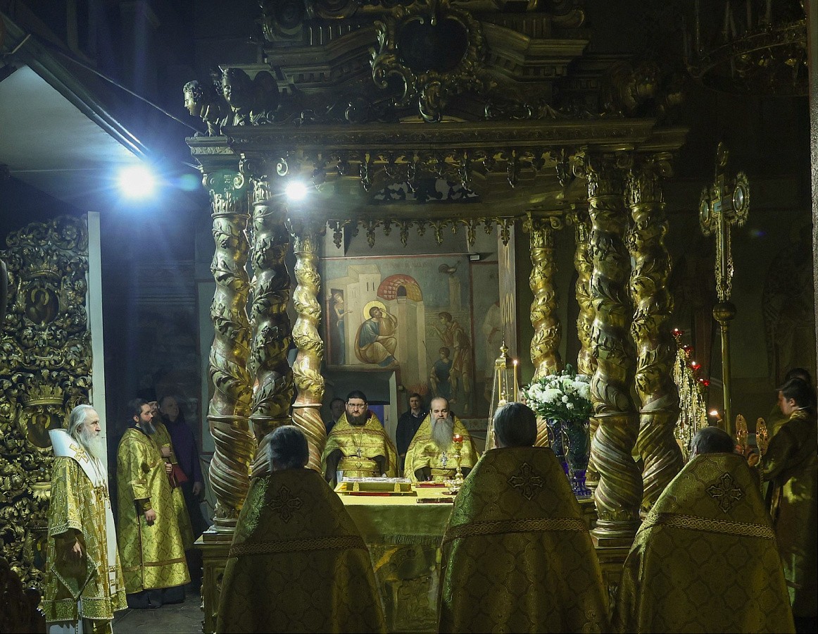 Его Высокопреосвященству сослужили наместник Андреевского ставропигиального мужского монастыря игумен Дионисий (Шленов), наместник Курской Коренной Рождества Пресвятой Богородицы мужской пустыни игумен Серафим (Котельников), монашествующие в священном сане.