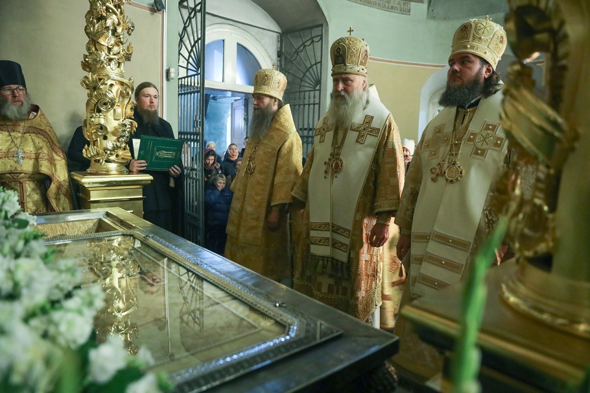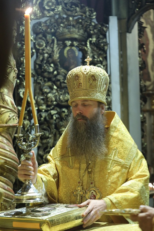 Его Высокопреосвященству сослужили: епископ Сергиево-Посадский и Дмитровский Фома, наместник Свято-Троицкой Сергиевой лавры, епископ Павлово-Посадский Силуан, братия Донского монастыря в священном сане.