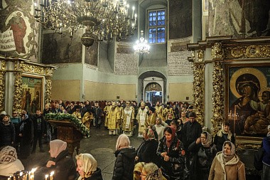 По окончании Литургии было совершено славление перед мощами святителя Тихона, Патриарха Московского и всея России.