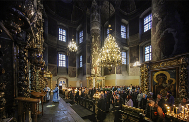 Богослужебные песнопения исполнил хор Донского монастыря.