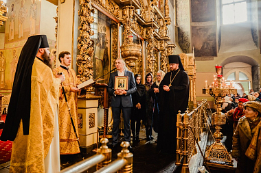 Князь Иван Илларионович отметил, что история его предков тесно связана с Донской обителью, многие из них погребены в монастырском некрополе и что он с особым чувством находится в храме, стены которого помнят его прародителей.