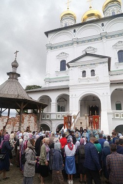 Накануне в Успенском соборе обители наместник монастыря архимандрит Сергий (Воронков) в сослужении братии в священном сане отслужил всенощное бдение.