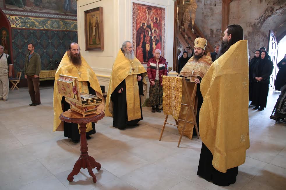 Ковчег с частью мощей был принесен в монастырь 14 сентября. У ворот обители святыню встречали наместник монастыря архимандрит Сергий (Воронков) с братией.