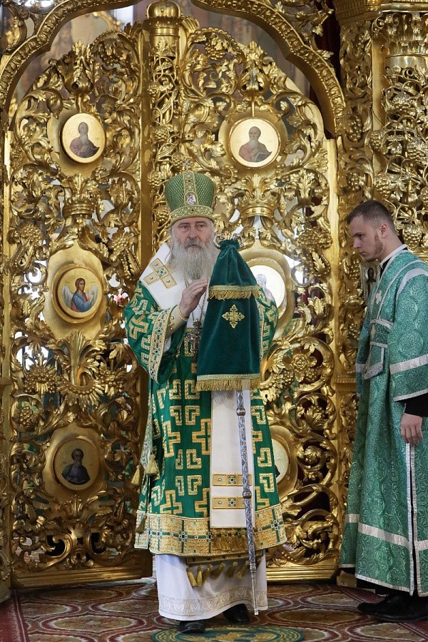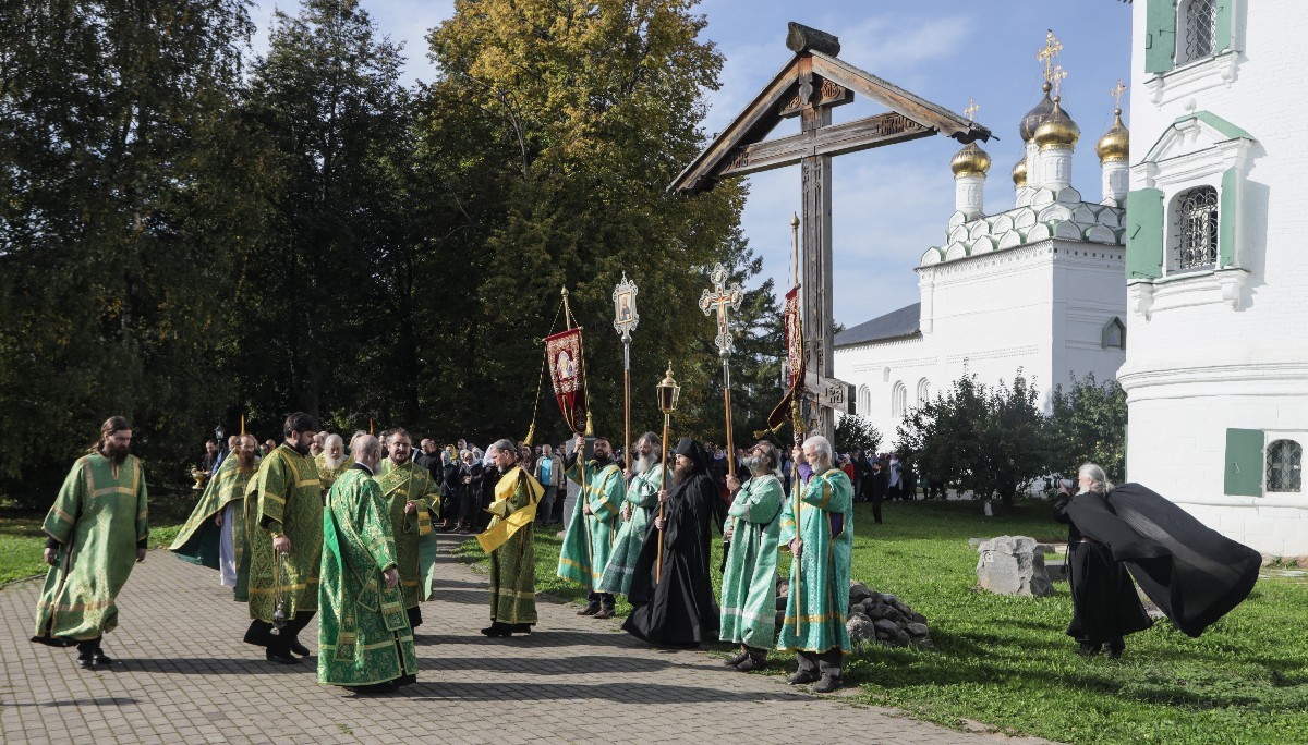 По окончании Литургии состоялся крестный ход вокруг Успенского собора монастыря. После чего владыка Феогност передал братии и прихожанам поздравления от имени Священноархимандрита обители – Святейшего Патриарха Московского и всея Руси Кирилла и обратился к собравшимся с архипастырским словом.