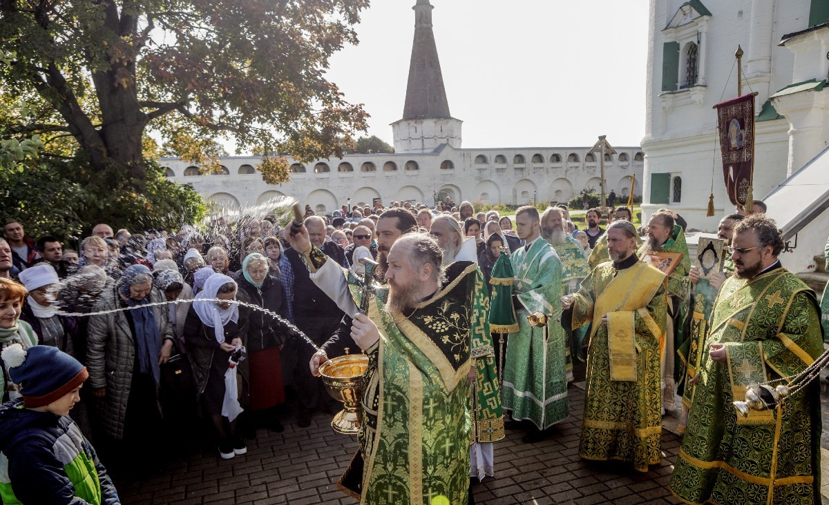 Праздничную Божественную литургию в Успенском соборе монастыря возглавил архиепископ Каширский Феогност, председатель Синодального отдела по монастырям и монашеству.
