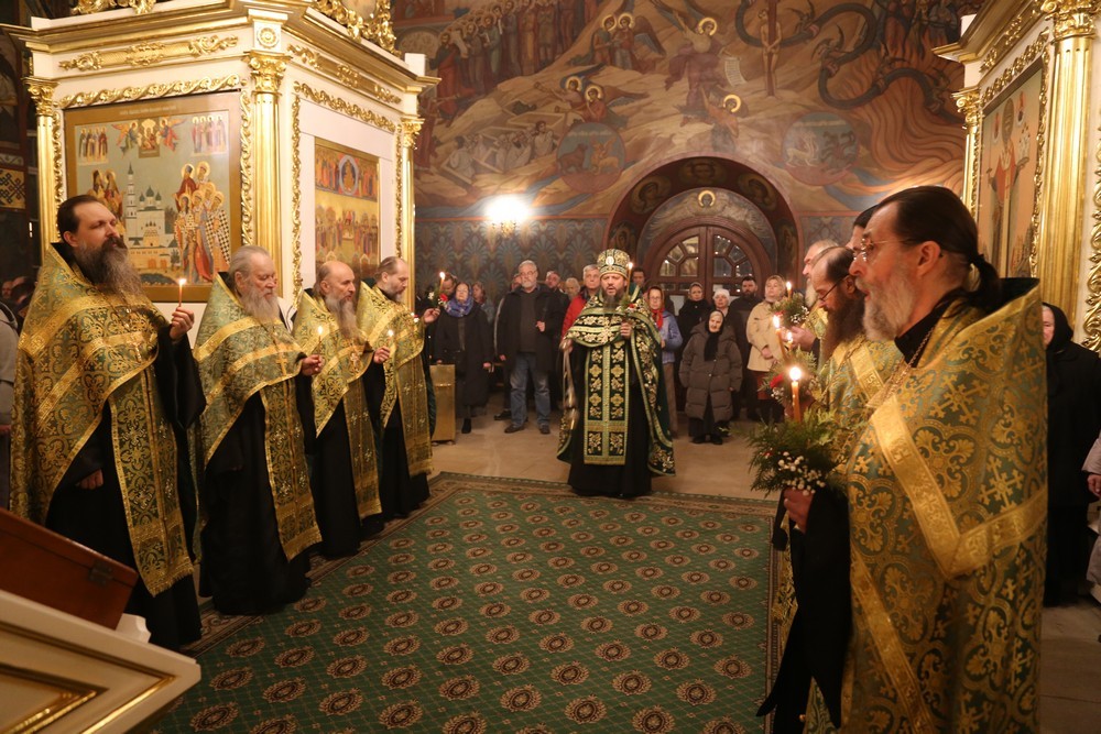По окончании Божественной литургии священнослужители совершили славление у мощей преподобного Иосифа.