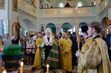После полиелея Святейший Патриарх Кирилл поздравил верующих с праздником: